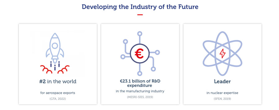 According to the Invest in France platform, France is expected to develop innovation to transform and shape the future of high-technology industries, focusing on maintaining and enhancing its position among the leading industrial powers: