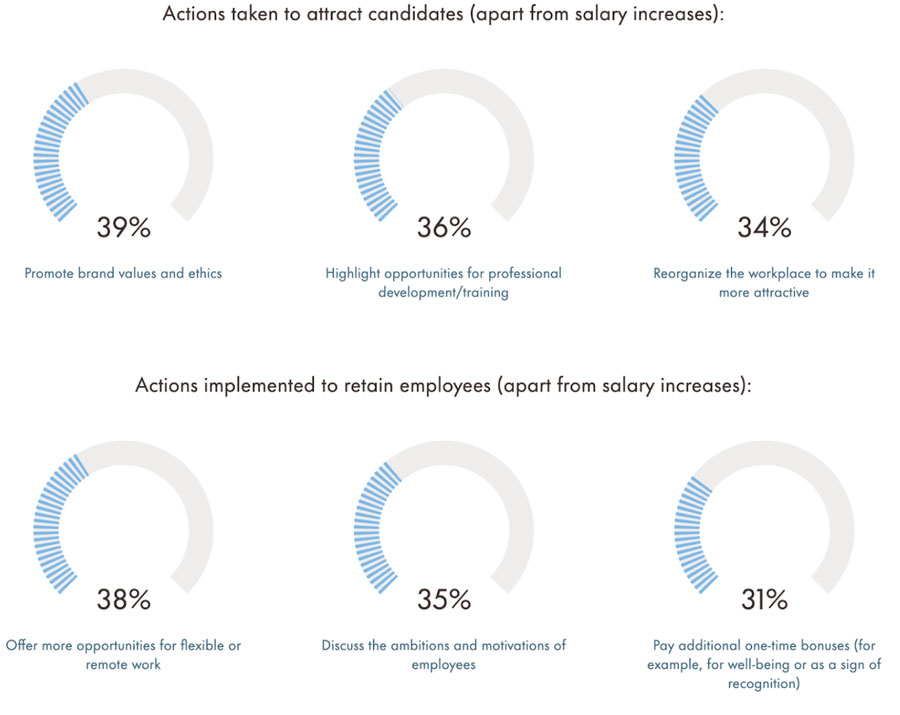 Another common strategy to increase talent retention is to focus heavily on compensation and benefits. As a result, new ways of working have now become part of the hiring benefits package, particularly remote and hybrid work.
