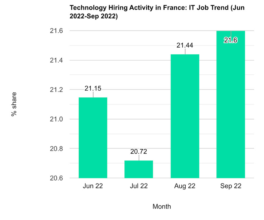 In November 2022, the french tech industry saw a significant rise in recruitment, where 21% of vacancies were from the IT sector: