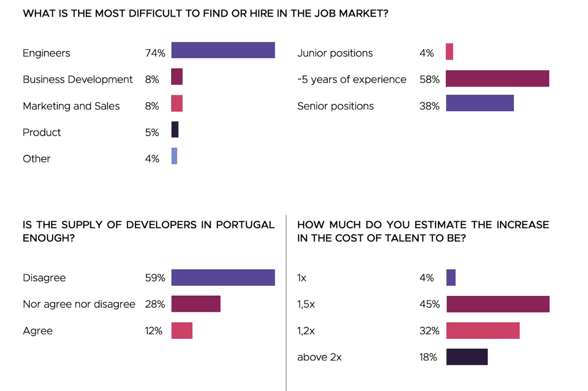 According to the Fintech Report 2022, the most complex positions to fill are engineers, and the supply of developers in Portugal doesn’t meet the demand. The survey also predicts the cost of roles will increase by 1.5x.