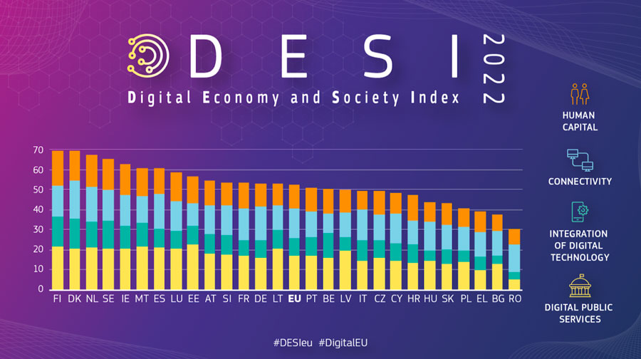The Digital Economy and Society Index (DESI) measures digitalisation variables and European countries’ digital performances and is often used as a measuring tool to understand how European economies are evolving and adapting.